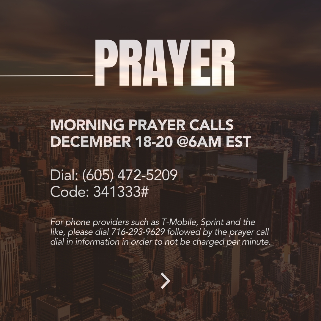6:00am EST Prayer Calls Wednesday-Friday — Dial: 605-472-5209 | Code: 341333#