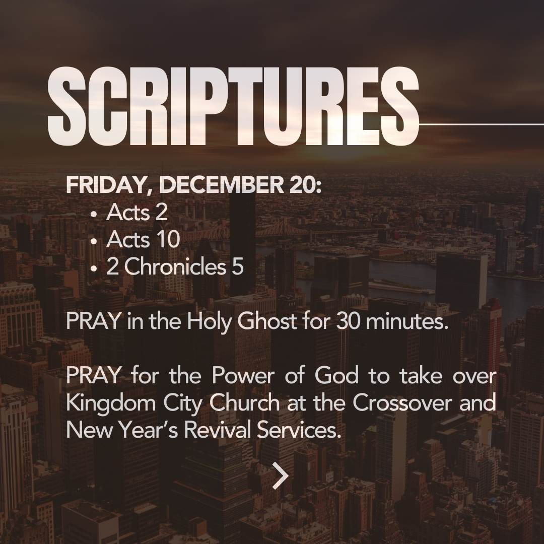 - Pray for the Power of God to take over Kingdom City Church at the Crossover and New Year’s Revival Services