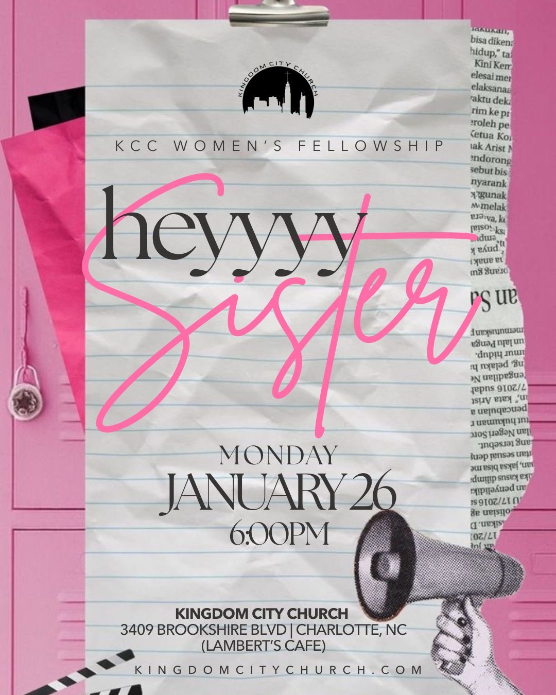 KCC Charlotte 3409 Brookshire Blvd, Charlotte, NC, United Statesheyyy Sister! You don't want to miss our Women's Ministry Fellowship this Monday, January 26 starting at 6pm to 8:30pm in Lambert's Cafe at KCC Charlotte! This fellowship is a soft space for strong women to come for the calm, stay for the smiles, and, embrace the love! All women and young ladies are encouraged […]